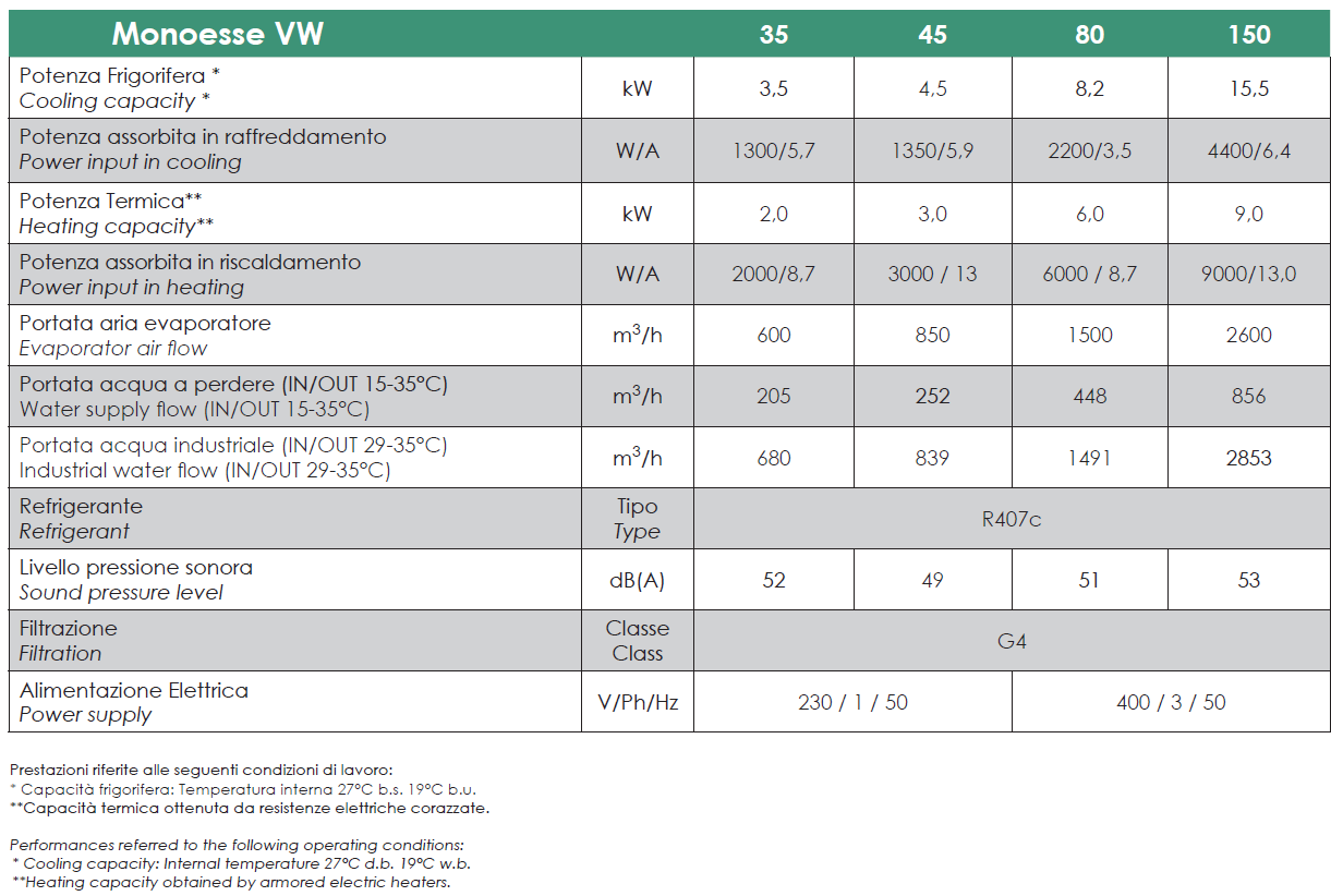 Nelle quattro taglie standard è in grado di trattare volumi fino a 400m3; sono disponibili versioni speciali per volumetrie maggiori.