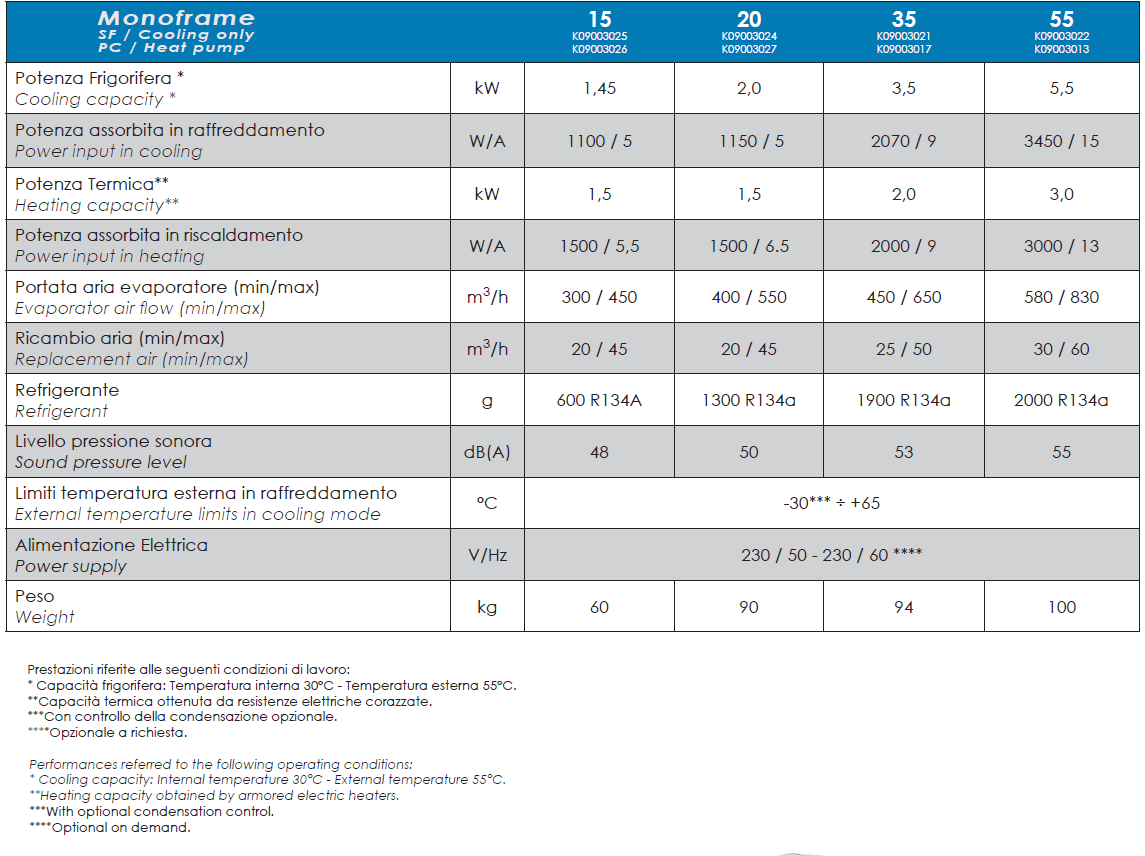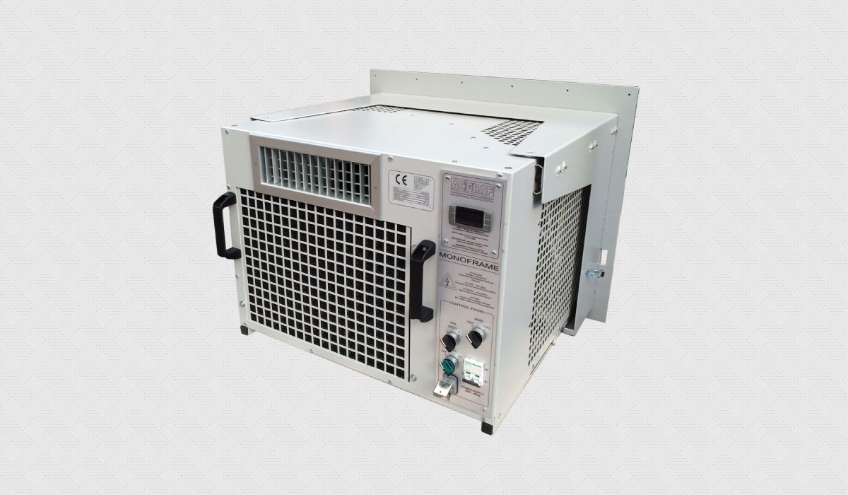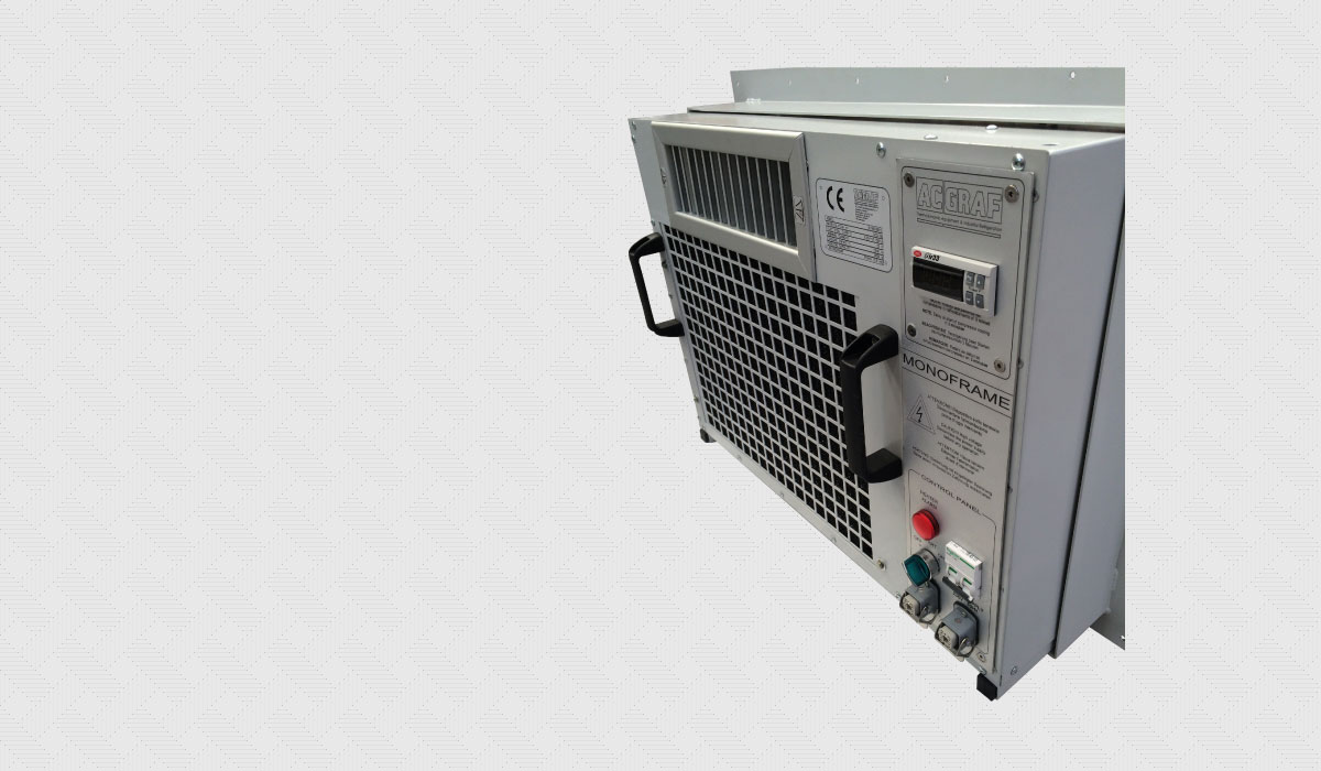 La versione standard prevede un trattamento di cataforesi dei lamierati e successiva finitura RAL 7035. Monoframe è disponibile su richiesta in qualsiasi colorazione oppure può essere costruito interamente in acciaio inox con trattamento superficiale degli scambiatori di calore per installazioni in ambienti particolarmete aggressivi o offshore.
