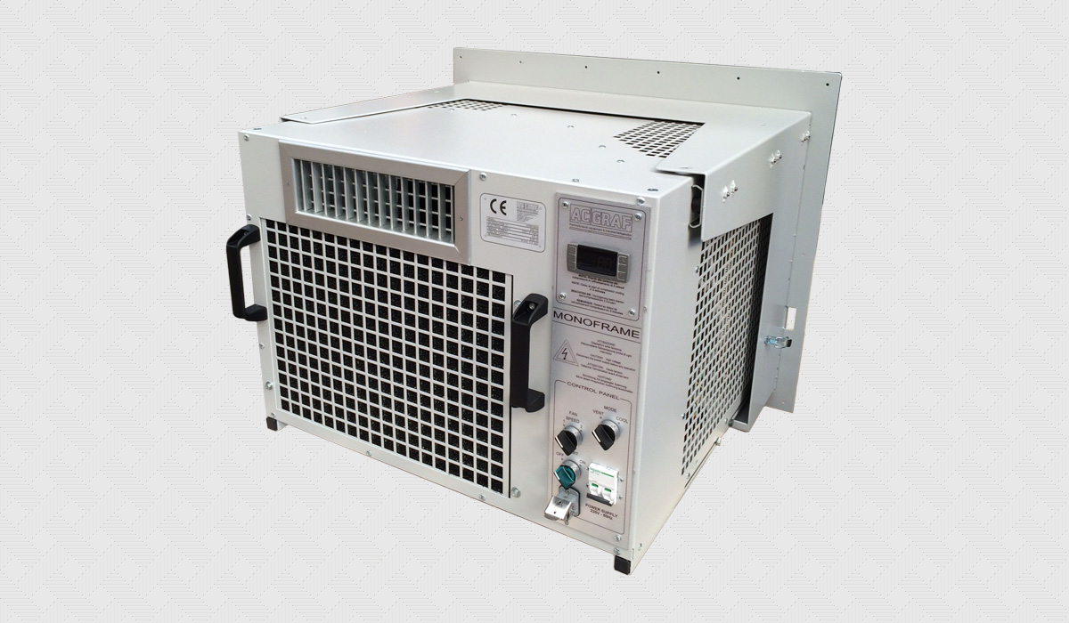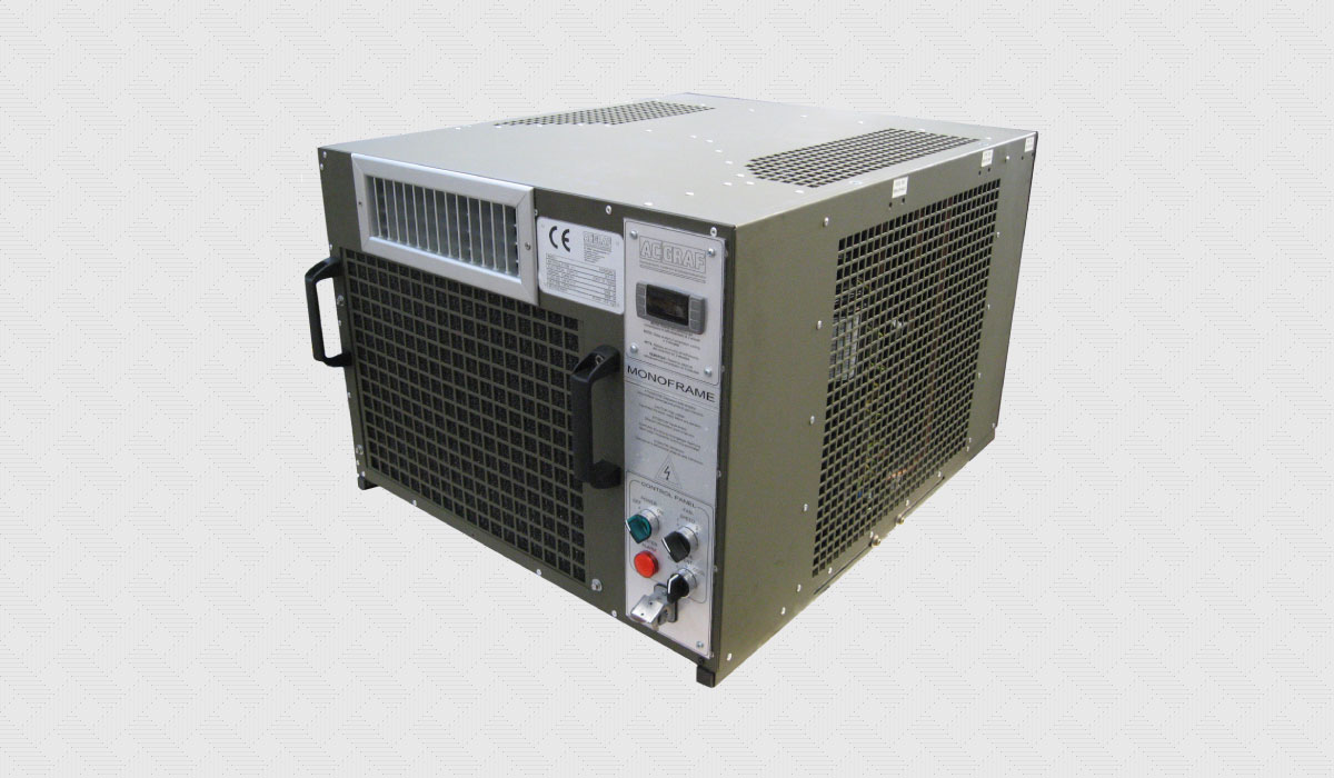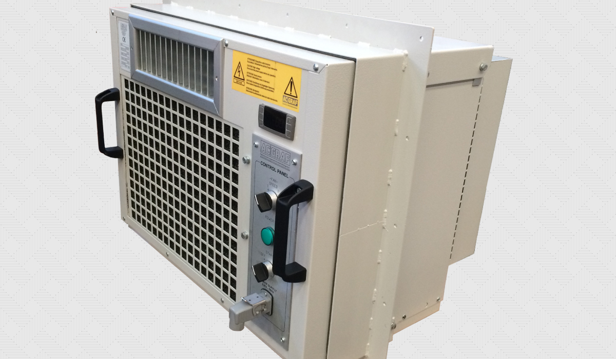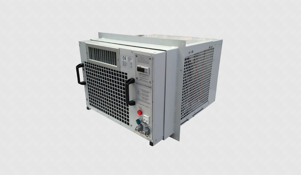Condizionatore monoblocco tropicalizzato per container, shelter, cabine di manovra, quadri elettrici e unità modulari da campo.