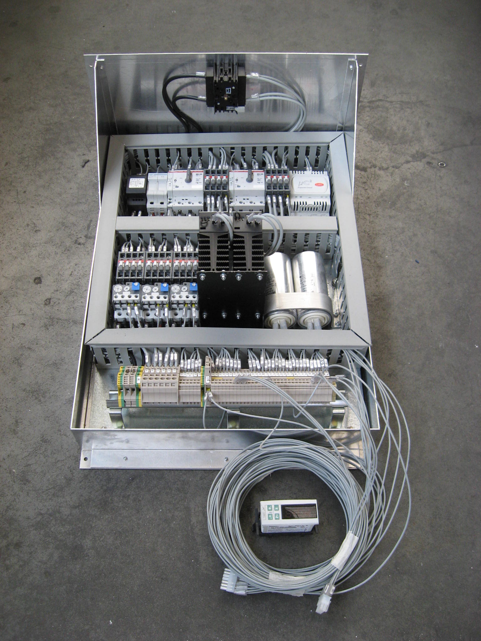 • Quadro elettrico remoto con connessioni rapide, termoregolatore elettronico e sistema SOFT START per l’avviamento dolce dei compressori. Alimentazione 380 V.